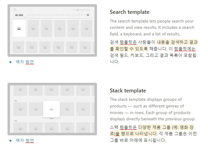 앱에 템플릿을 통합하는 자세한 정보는 **TVML**을 참조하세요.